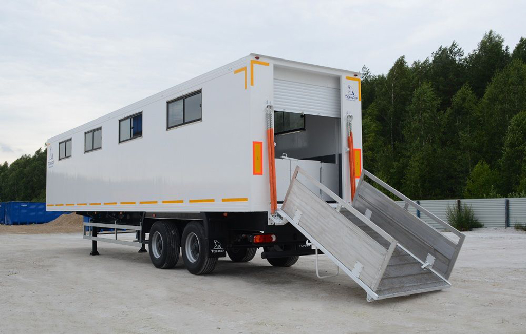 - Полуприцеп выполнен на базе изотермического полуприцепа с усиленным кузовом.